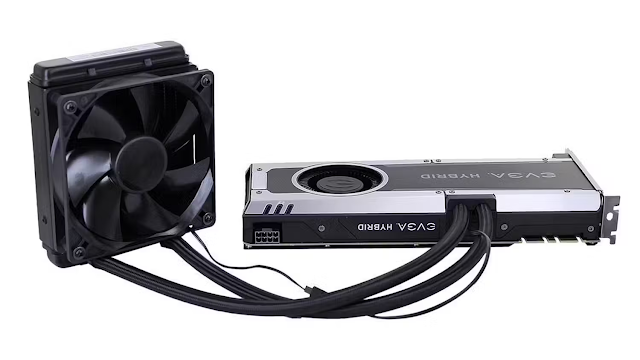 تجمع مبردات وحدة معالجة الرسومات الهجينة بين حلقة مغلقة ومبرد مياه مملوء مسبقًا وتبريد الهواء التقليدي لتمنحك مزيجًا من مزايا كليهما. يمكنك شراء هذه المبردات إما مُجهزة مسبقًا ببطاقة أو كترقية ما بعد البيع. يوجد مشعاع صغير متصل بالفعل، والذي سيتم تركيبه على فتحة تهوية المروحة. تعمل حلقة الماء على تبريد وحدة معالجة الرسومات نفسها، بينما يتم تبريد المكونات الأخرى الموجودة على البطاقة عن طريق تبريد الهواء التقليدي.